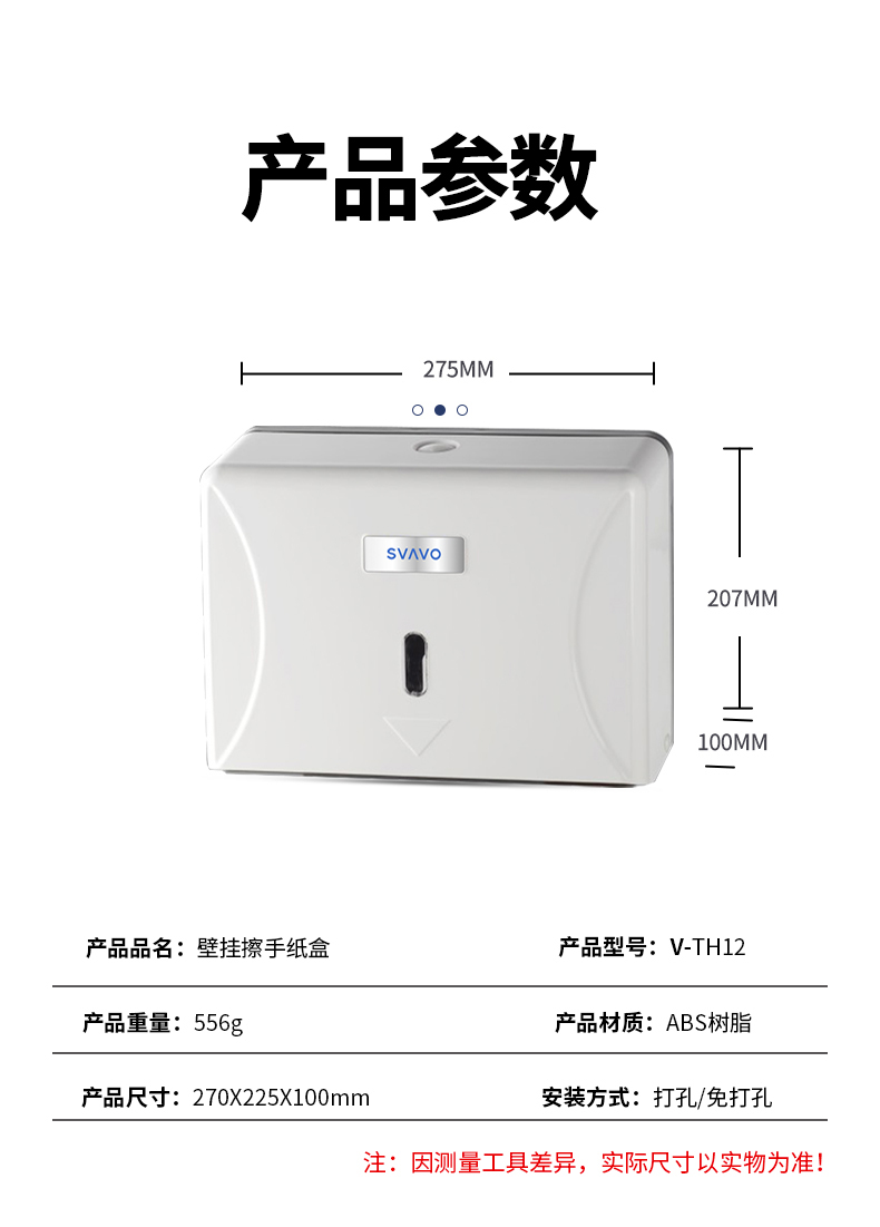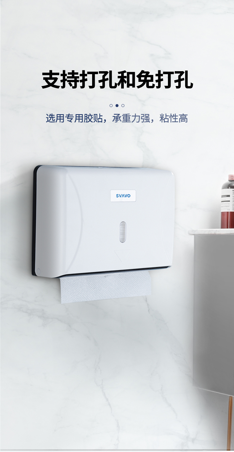 瑞沃(SVAVO)擦手纸盒免打孔酒店卫生间纸巾盒壁挂厨房抽纸盒挂墙家用厕所纸盒 V-TH12白色
