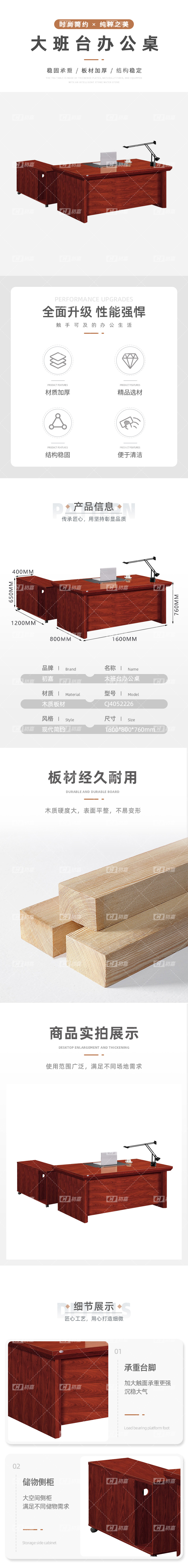 初嘉CJ-4052226油漆家具老板桌大班台办公桌主管经理桌含副柜 1.6米