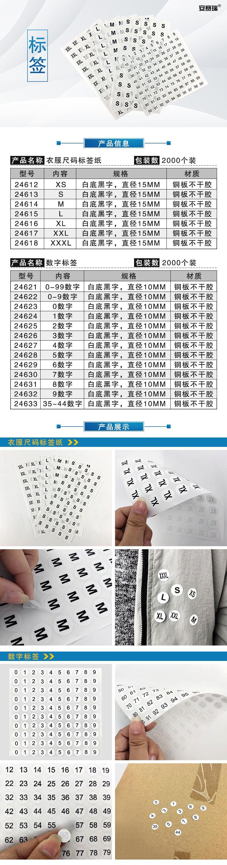 安赛瑞 数字号码贴纸 圆形序号编号标签纸 Φ10MM(2000个装)衣服鞋袜尺码不干胶标签贴 数字8 24631