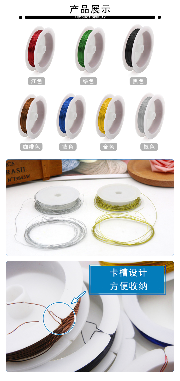 收纳设计贴心:卷轴配备卡槽结构,使用后可快速固定铁丝末端,有效避免缠绕散乱问题