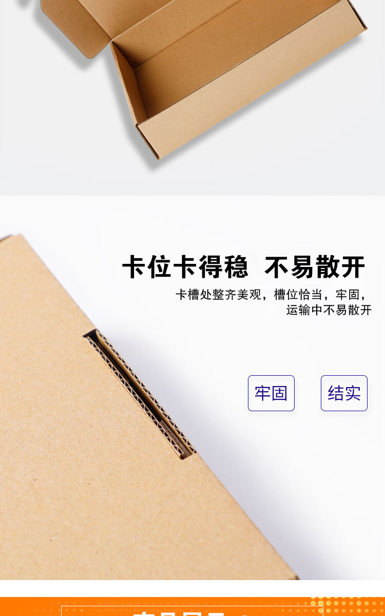 自带卡位结构,卡槽整齐牢固,运输中不易散开,无需额外胶带封口
