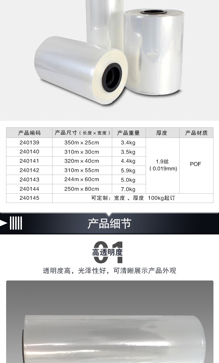 材质为POF,环保透明,光泽性好,可清晰展示产品外观