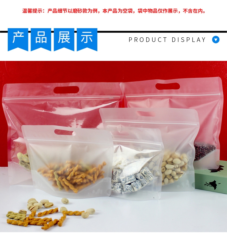 5 本产品为空袋,图片中展示的袋内物品(如坚果、零食)不包含在包装内