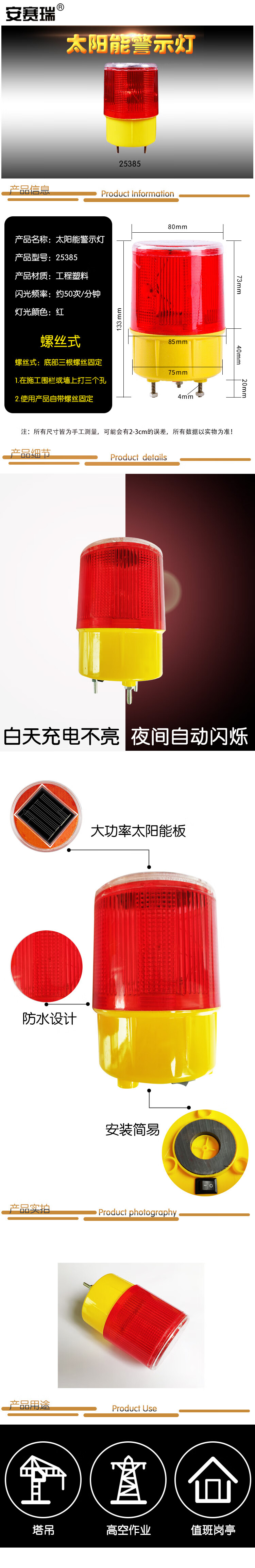 安赛瑞 太阳能警示灯(经济型)岗亭路障闪灯LED夜间信号灯塔灯 安全交通灯螺丝固定式135×80mm 25385