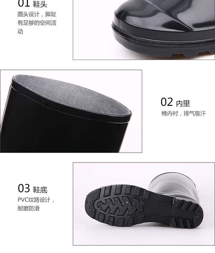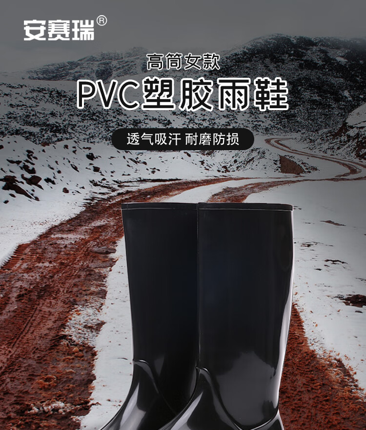 安赛瑞 高筒PVC塑胶雨鞋 雨靴胶鞋防水鞋 女士防水防滑耐磨户外劳保套鞋 37码/黑色 300073