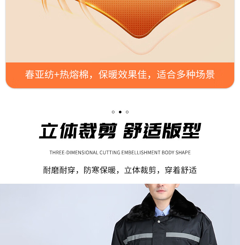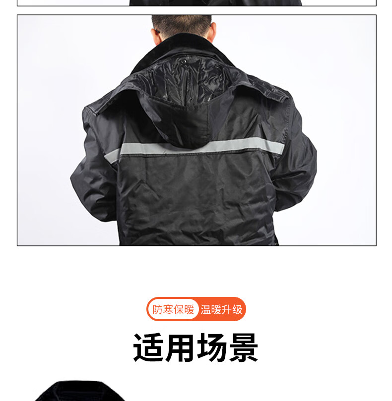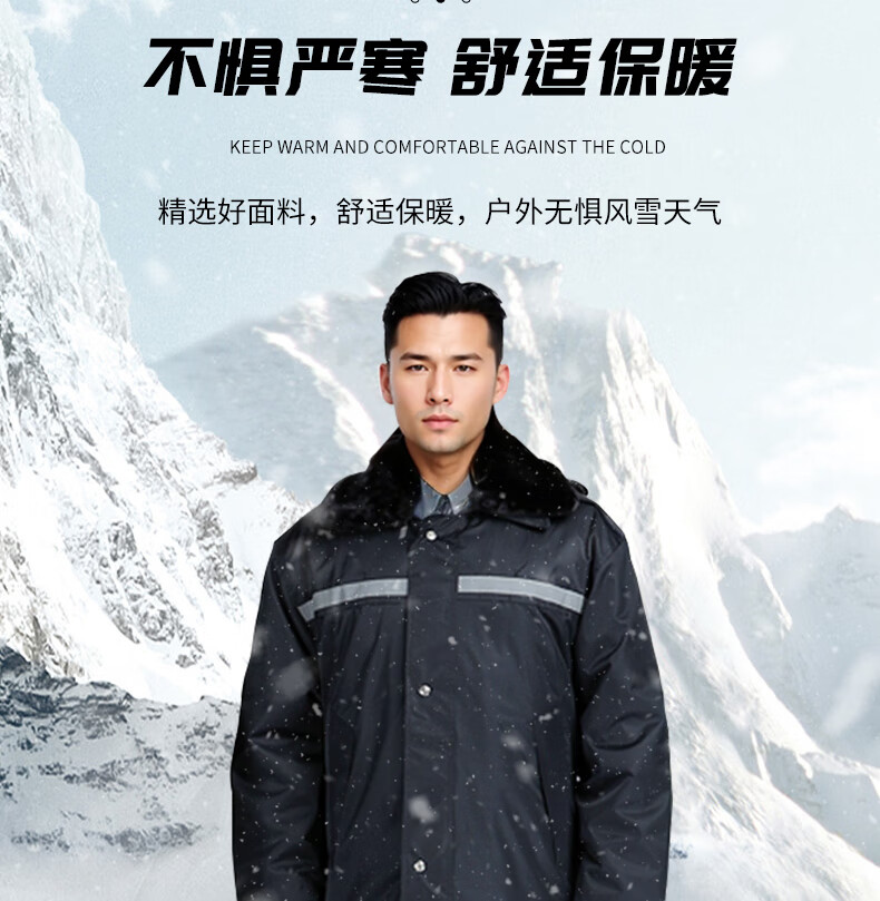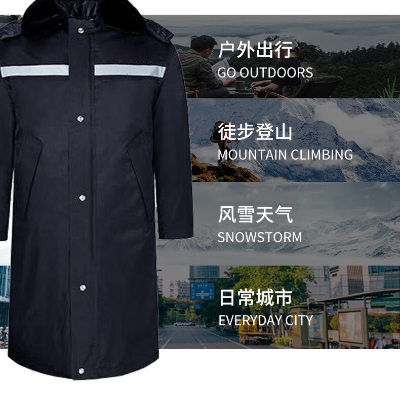 安赛瑞 加厚防寒保安大衣 多功能防寒服 防风保暖加长款棉服 物业巡逻防冻棉大衣 165/黑色 300153