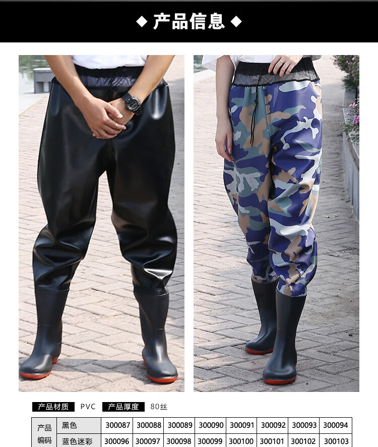 安赛瑞 加厚齐腰下水裤 半身雨裤皮叉裤雨鞋 水库水产作业耐磨渔业防水衣服 38码黑色 300087