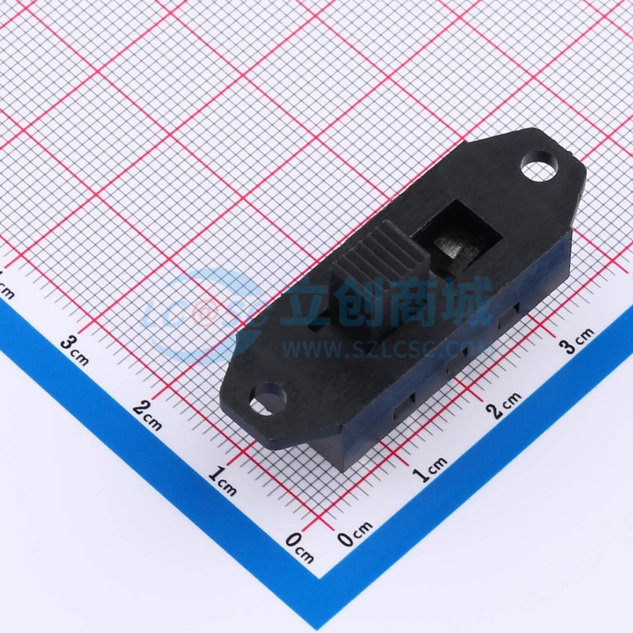拨动开关,立式直脚双排三档,42.5x14.2x8.5黑色平柄黑色主体,全塑带耳,柄长8mm