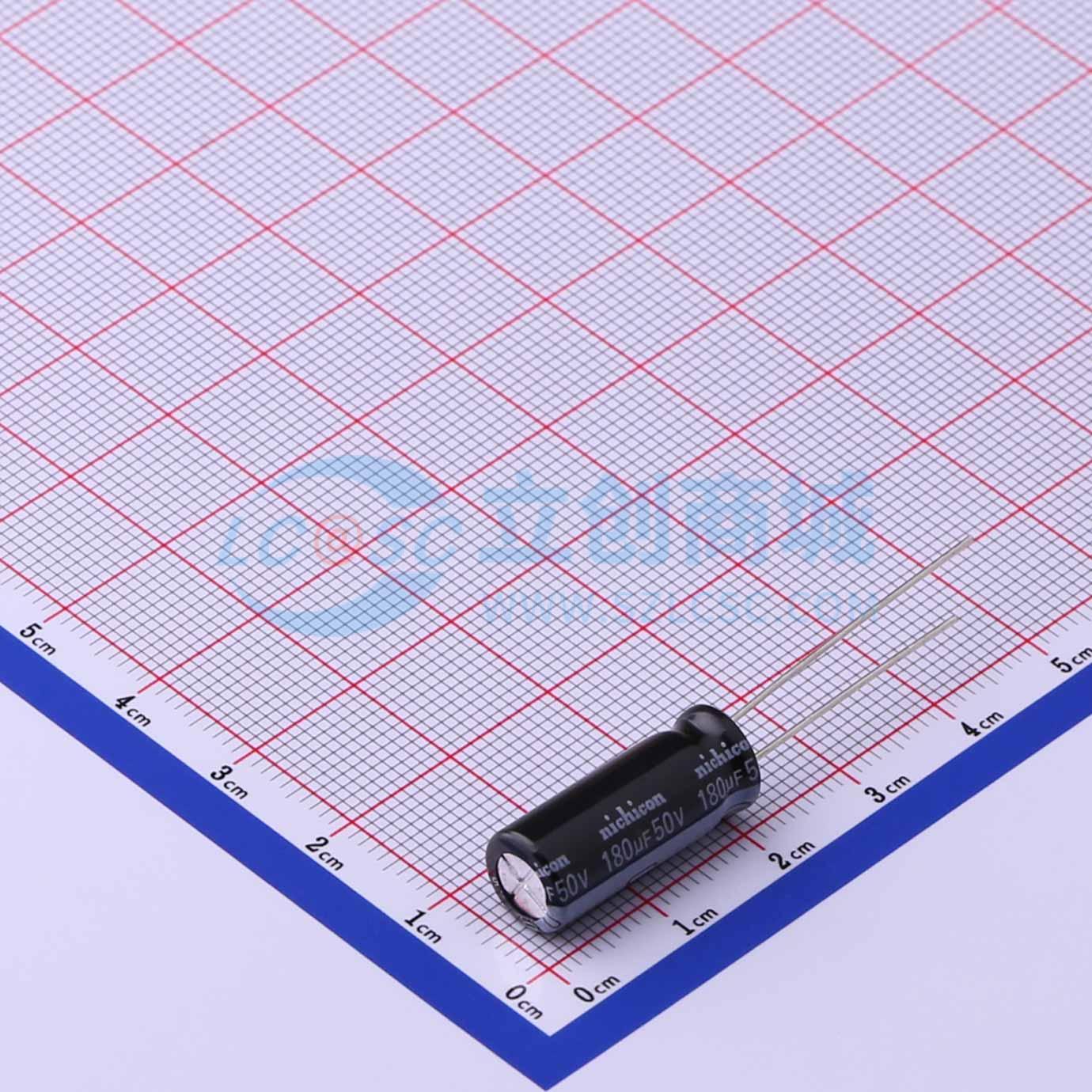 此图展示了型号为 UHE1H181MPD 的引脚布局