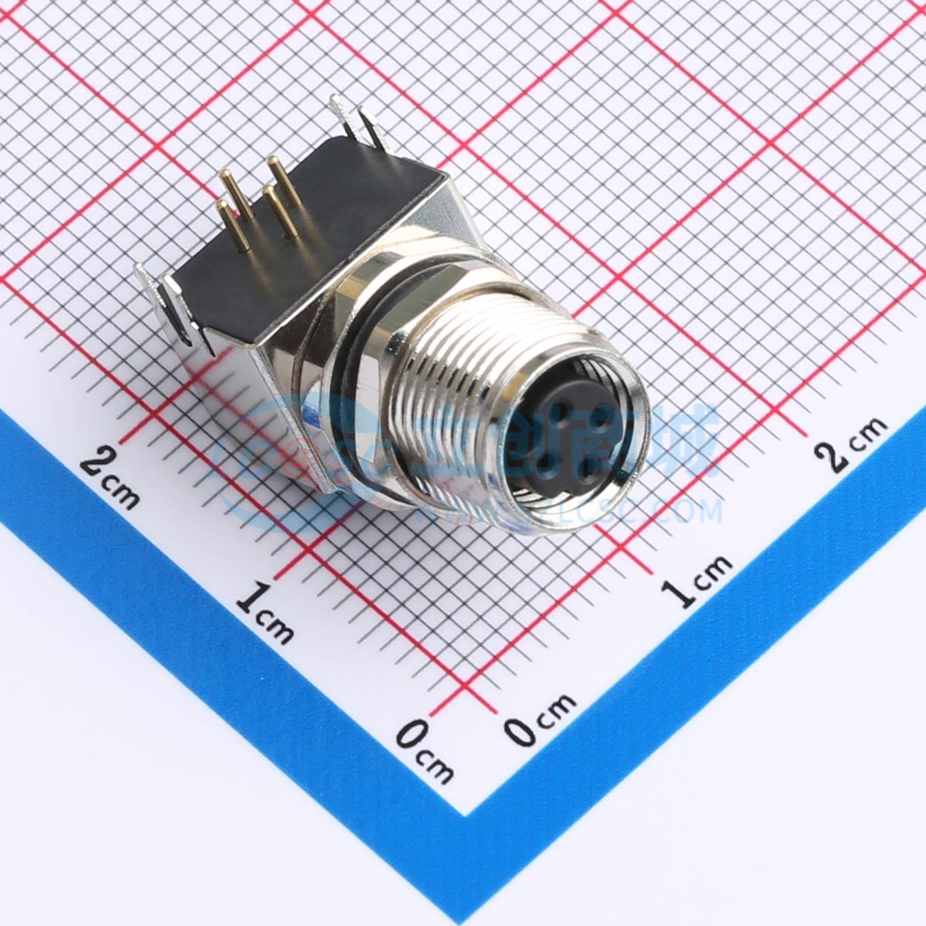 CAZN正成防水连接器M8弯式孔型金属插座4芯D编码PCB插板式法兰座锁板牙M10*0.75