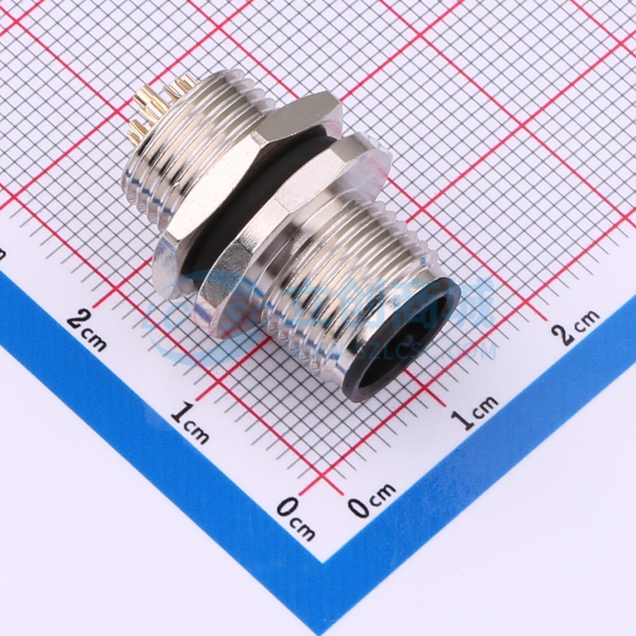- CAZN正成防水连接器M12板前安装针型金属插座8芯A编码焊线式法兰座锁板牙M12*1