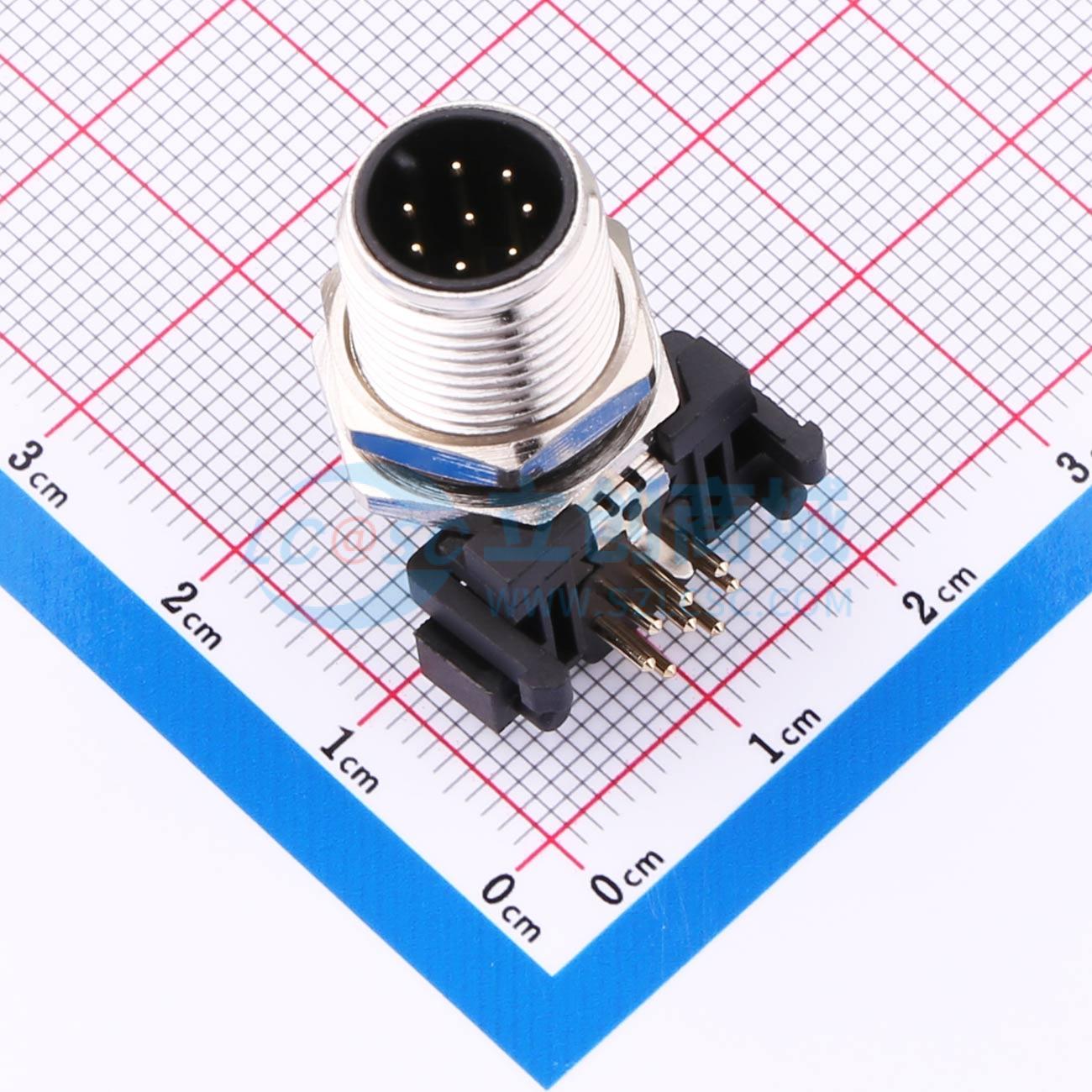 - CAZN正成防水连接器M12弯式针型金属插座8芯A编码PCB法兰座插板式锁板牙M12*1带屏蔽
