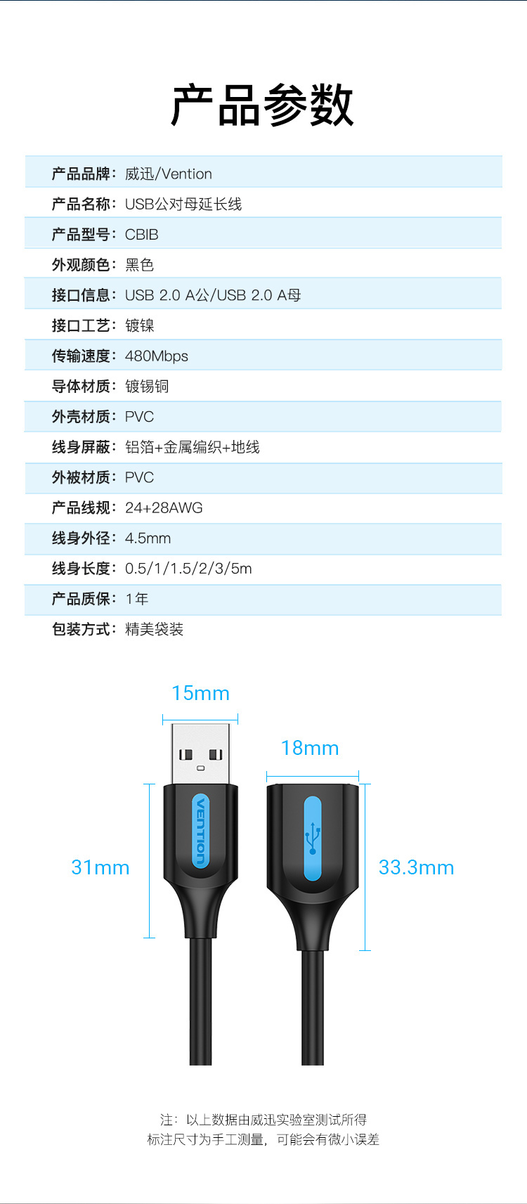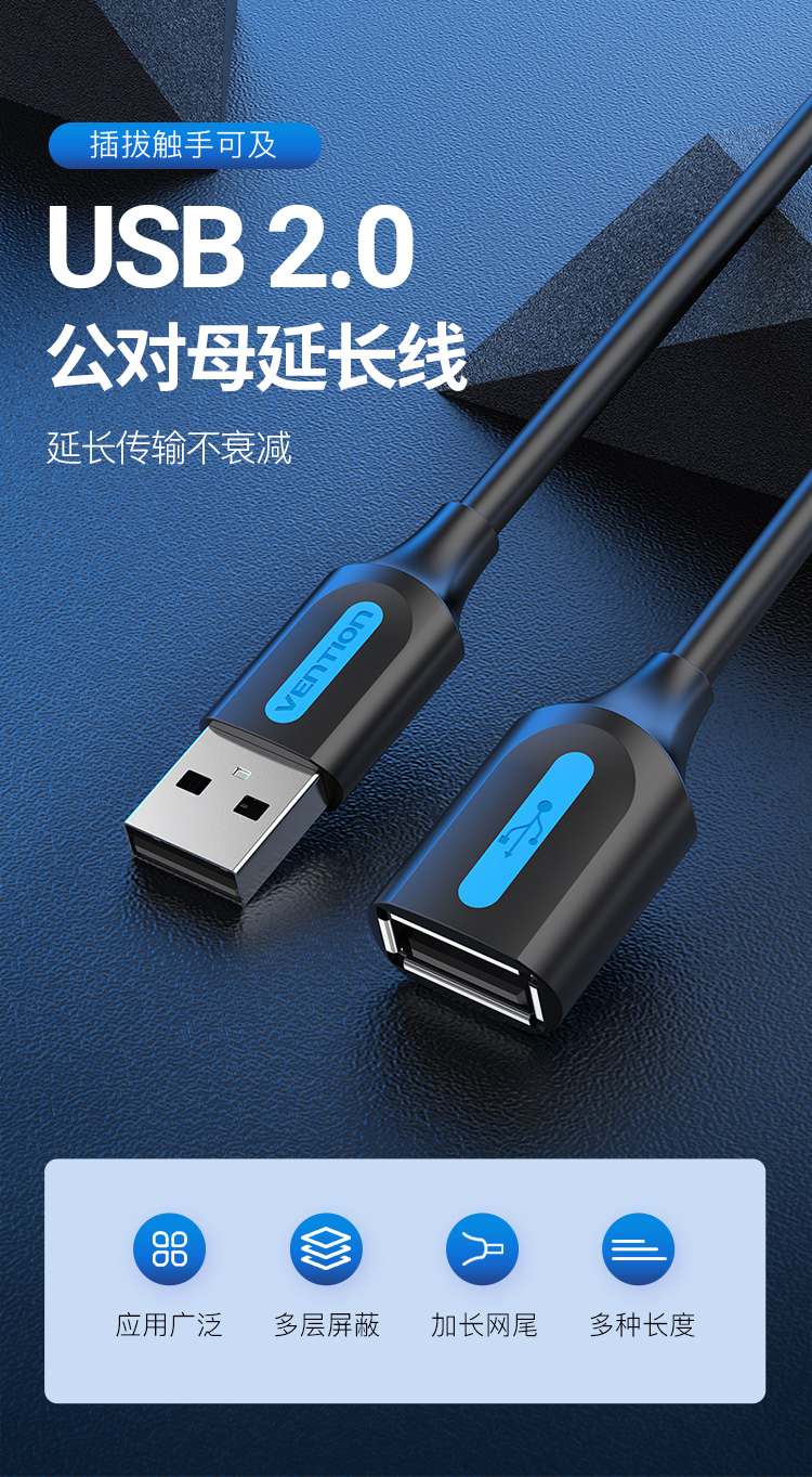 威迅USB2.0延长线 公对母数据连接线 电脑电视硬盘主机U盘键盘鼠标打印机扩展线加长转接线 5米CBIBJ