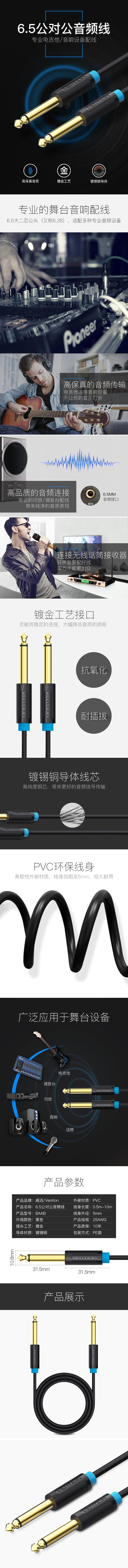 威迅BAA系列TS 6.35mm公对公音频线黑色10米