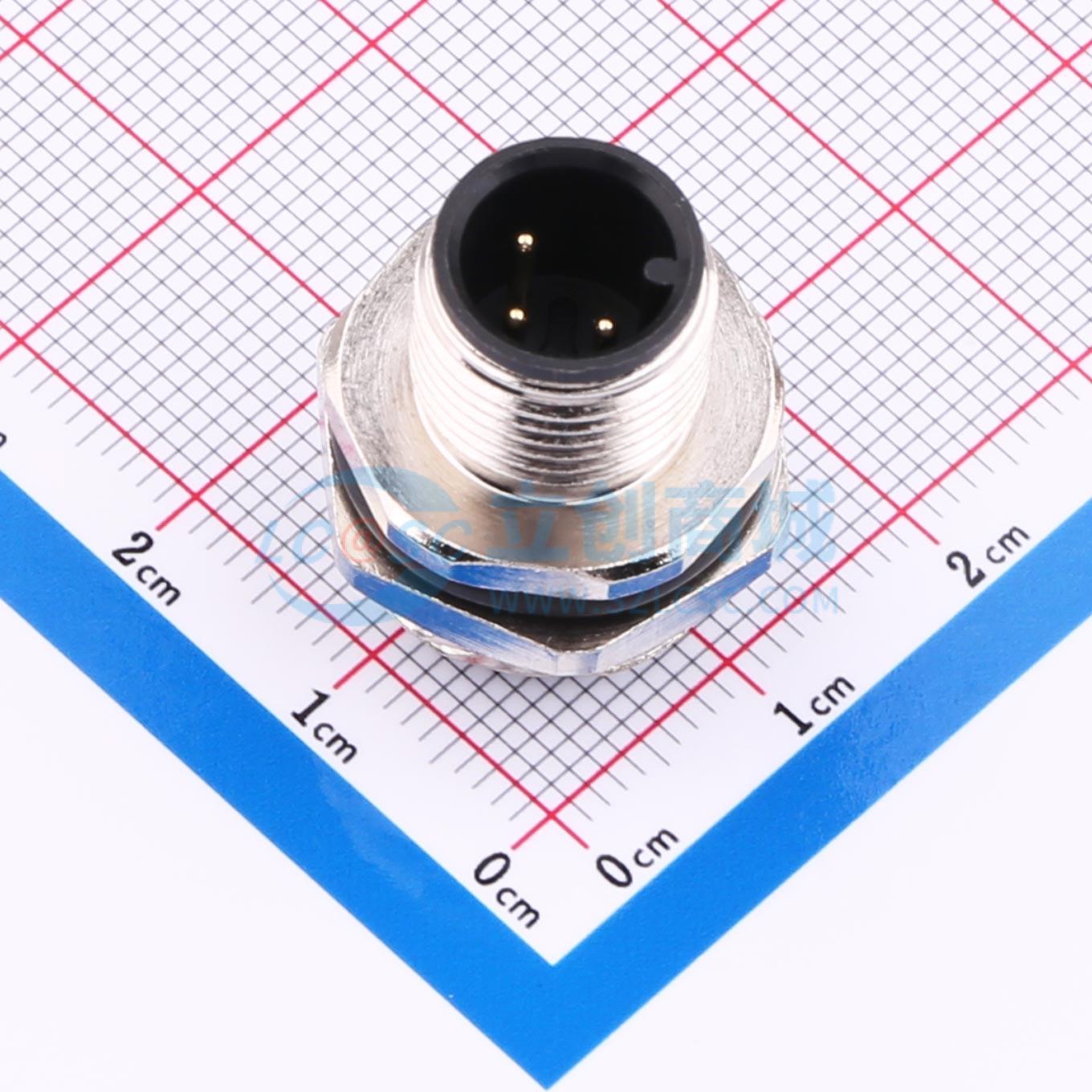 - M12-3p 面板式 板前安装针型 焊线插座 M16*1.5牙