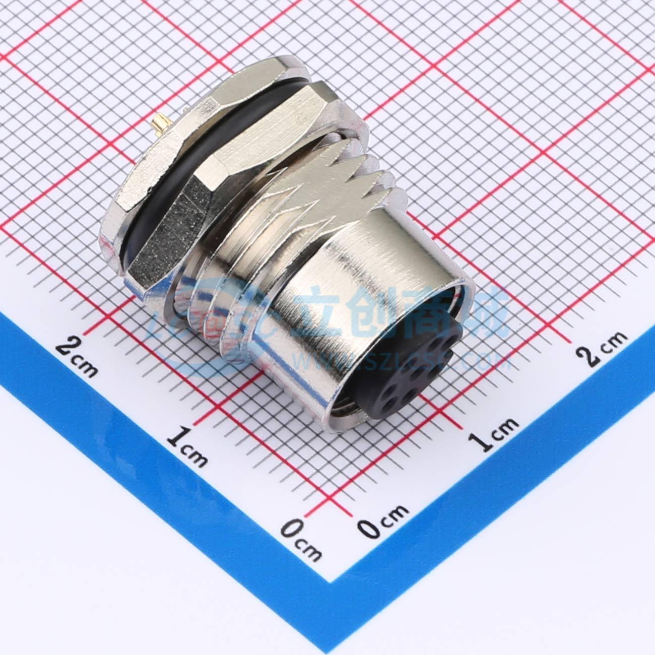 - M12-8p 面板式 板后安装孔型 焊线插座 M16*1.5牙