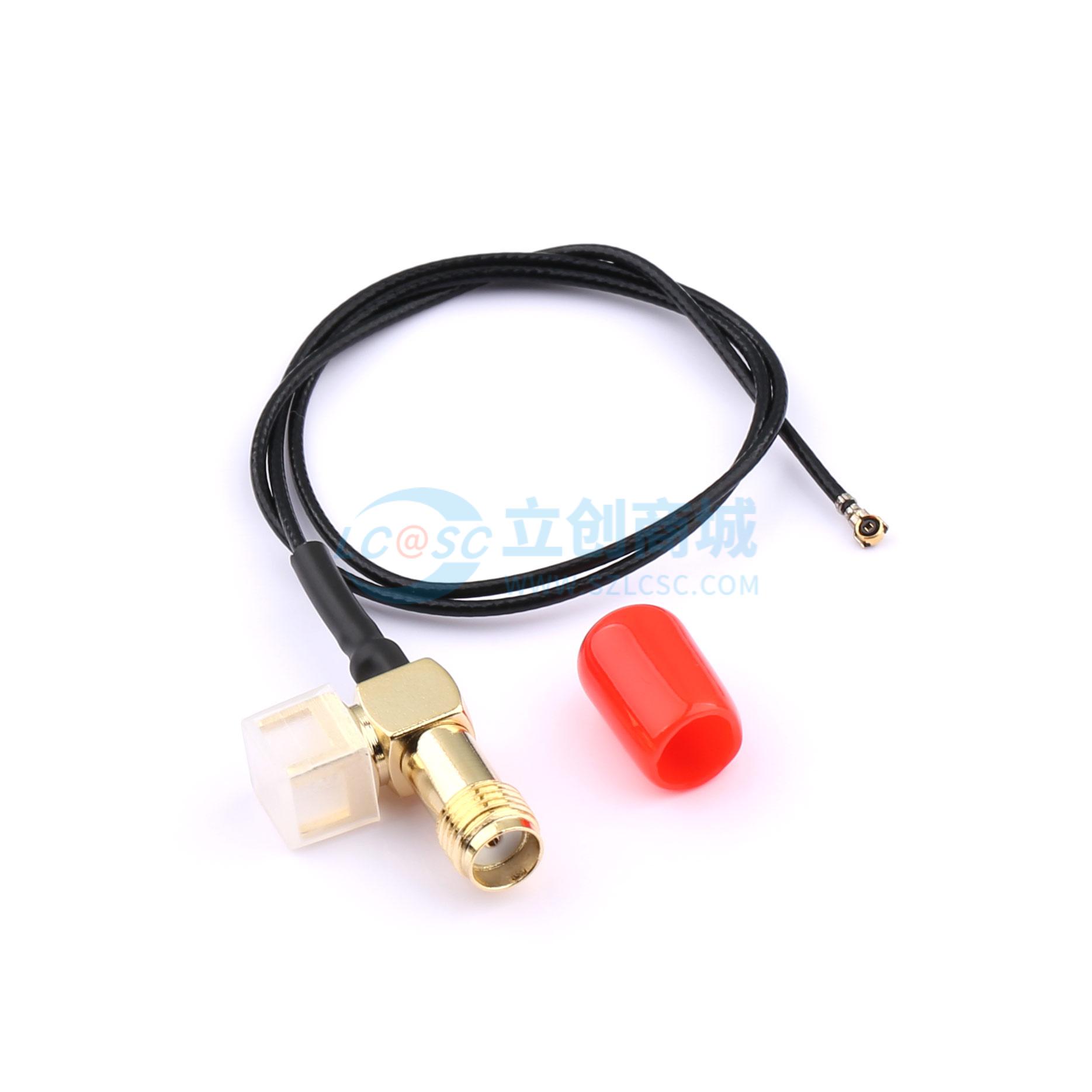 - 镀金四脚半牙SMA母头(带凹槽、螺纹长5MM) 转四代IPEX,RG1.13黑色线,L=300MM