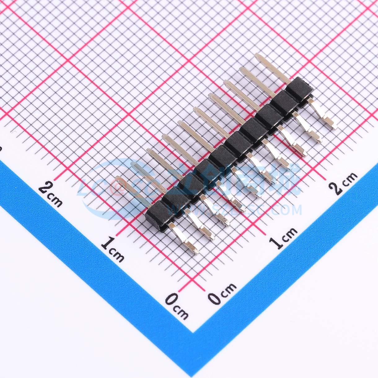 配套排母:HX PM2.54-1x10P系列 1x10P 间距:2.54mm 方针 卧贴