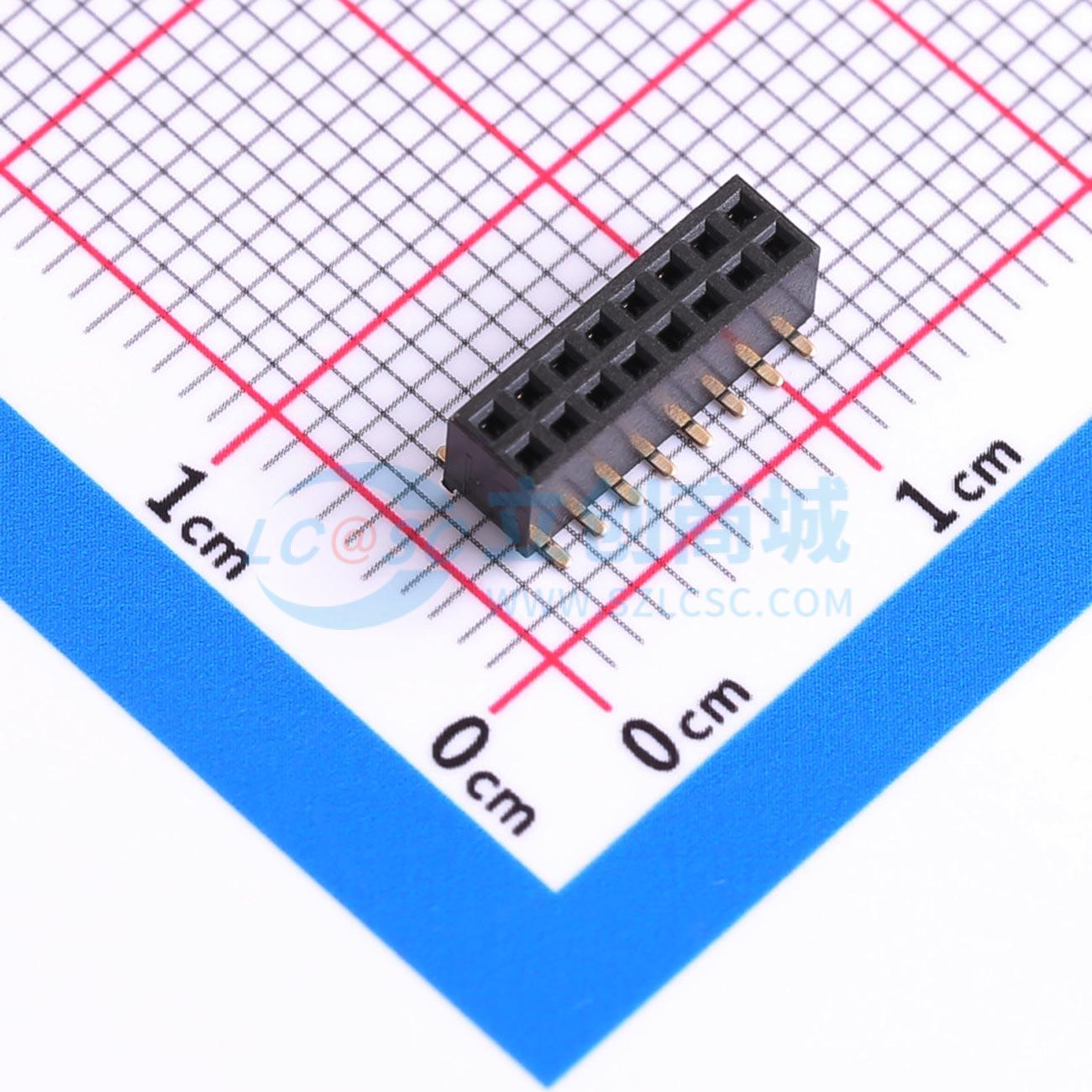配套排针:HX PZ1.27-2x8P系列 2x8P 间距:1.27mm 立贴