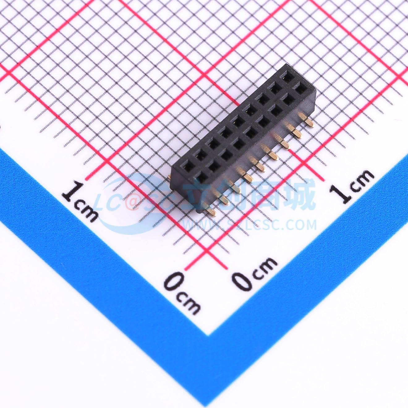 配套排针:HX PZ1.27-2x9P系列 2x9P 间距:1.27mm 立贴