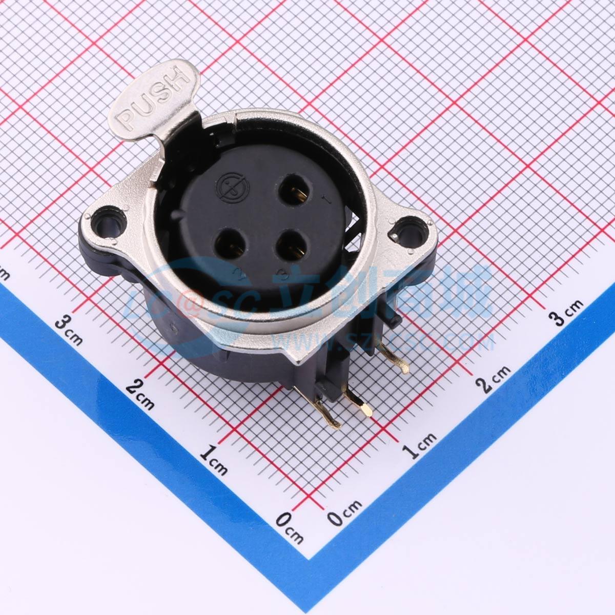 3Pin 卧式母座 镀金 金属面板 带推柄 螺丝孔接地