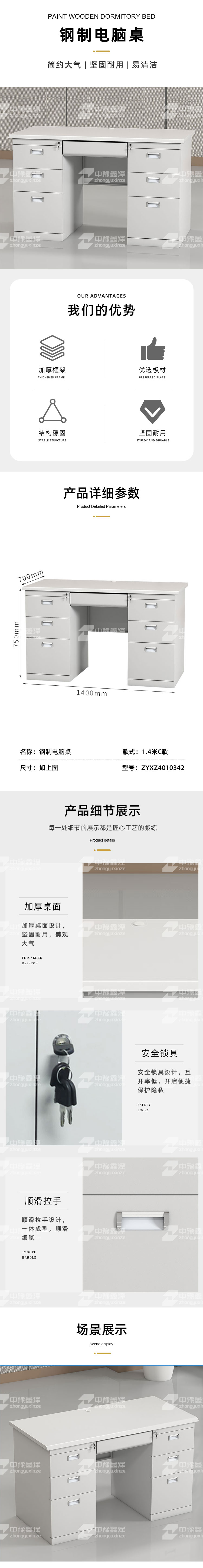 中豫鑫泽ZYXZ4010342 钢制办公桌职员桌员工桌学生写字台1.4米C款