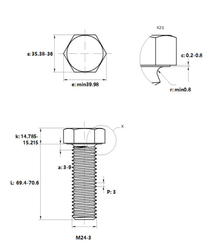 [55支/箱]GonLuo(工螺) 全螺纹六角头螺栓 GB5783 35K-C M24*70