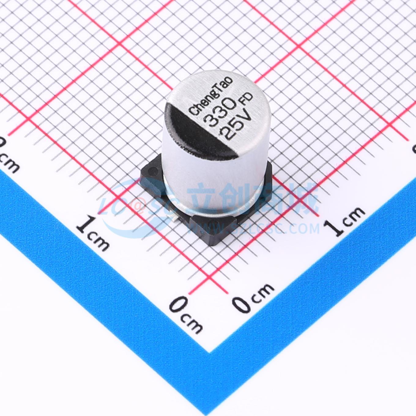 - FD 330UF 25V 8*10.5 小体积大容量极低阻抗,高纹波贴片铝电解