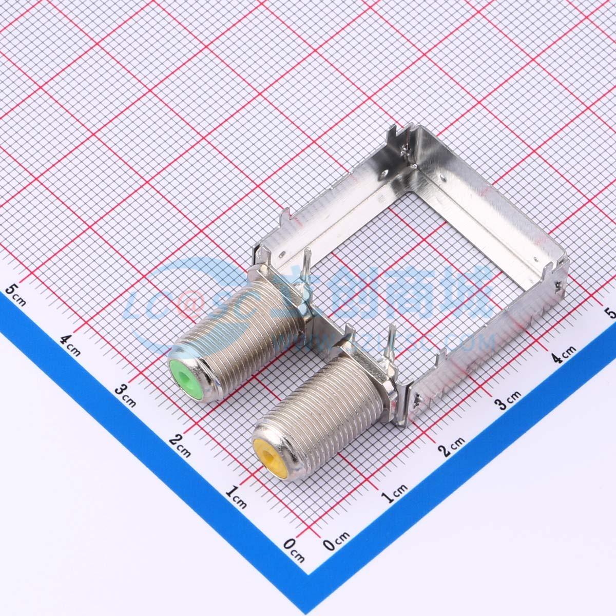 - IF-2928BFD-2F-4D-1.5-YG 双螺纹头 锌合金铆四点螺纹头1.5台阶 中心距4.5mm (头向自己脚朝下胶芯左边114C黄色 右边360C绿色)盖子盖上出货 RoHS