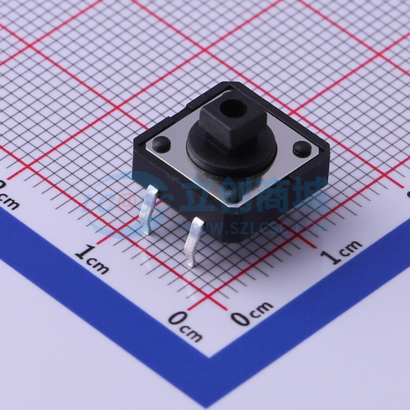 - 轻触开关12*12*7.3方头插件,250gf, 10w寿命,50mA,12VDC,行程0.25±0.1mm