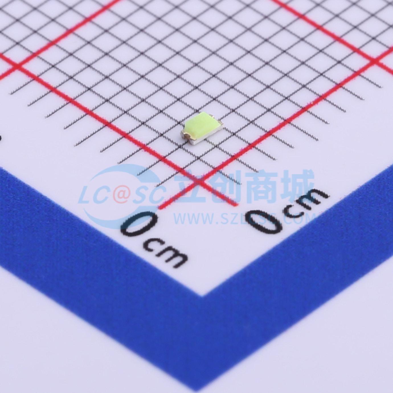 0603 规格封装 0603 package 顶部发光 Top view LED 胶体颜色:绿色雾状 Lens Color:Light Green Diffused. 发光颜色Emitted color: