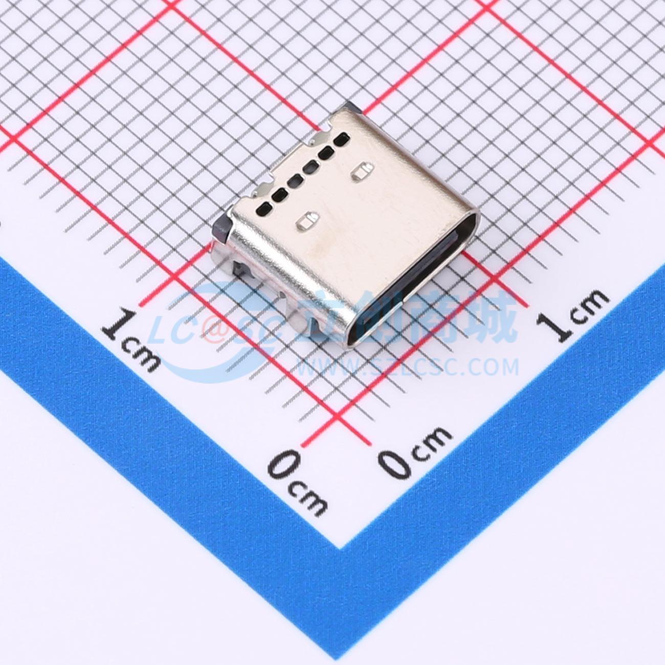 - TYPE-C母座 TYPE-C-24P 双排贴板有柱 L7.9mm 短脚脚长0.5