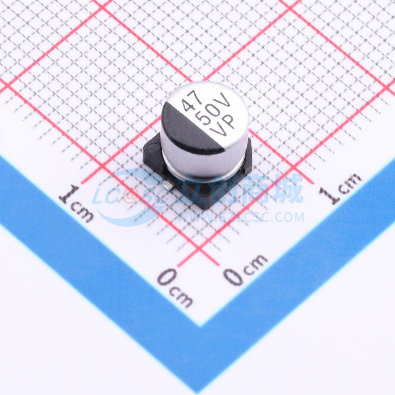 - 缩小体贴片电解电容(-55~+105度) 寿命:2000H容量:47UF电压:50V封装:SMD:D6.3xL5.4mm