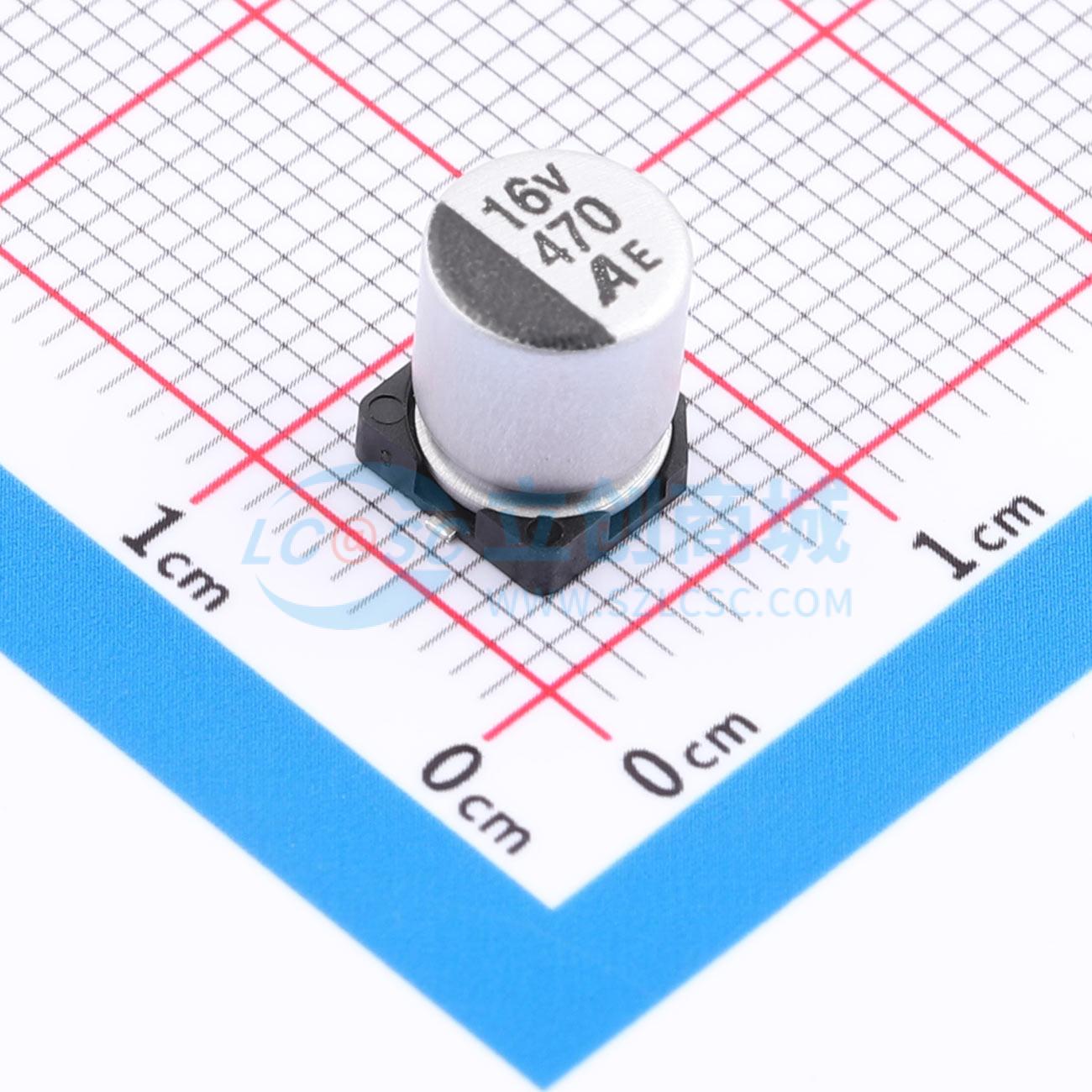 - 缩小体高频低阻贴片电解电容(-55~+105度) 寿命:2000H容量:470UF电压:16V封装:SMD:D6.3xL7.7mm