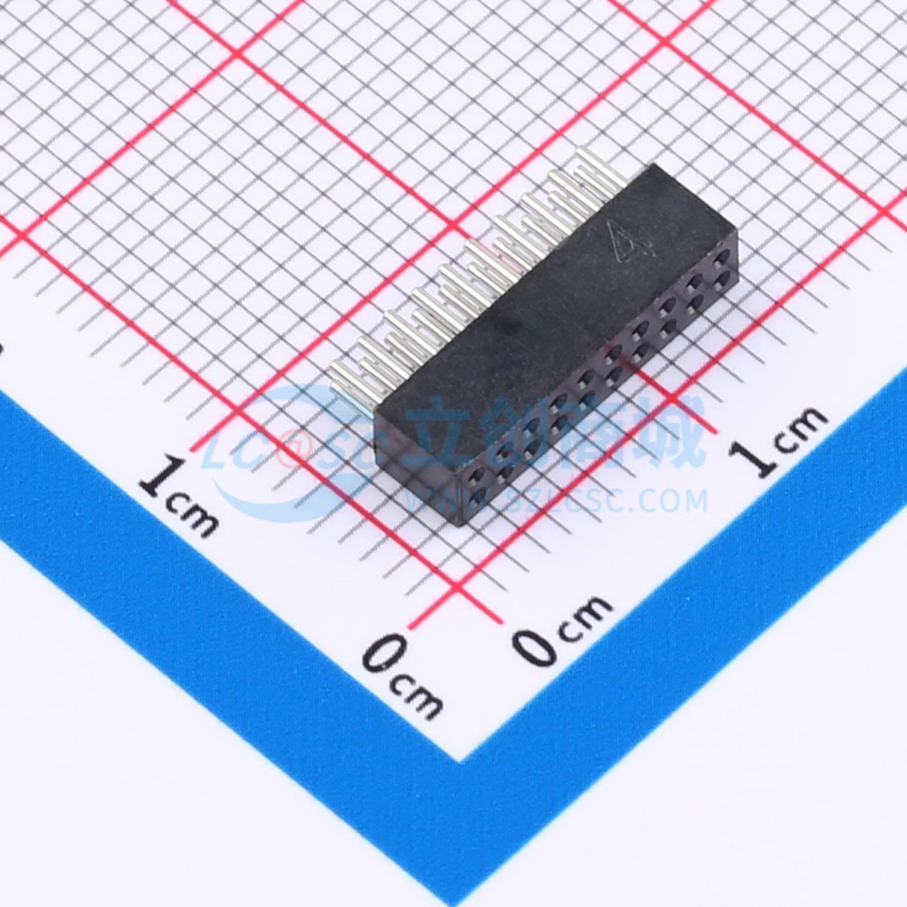 - 1.27圆孔排母 2*10P L=6.4 H=3.8 内金外锡 PPS料
