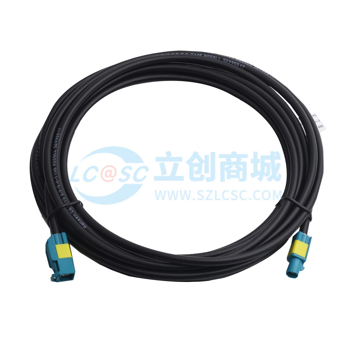 - FAKRA公头 Z扣/水蓝色转FAKRA母头 Z扣/水蓝色,RG58LL低损耗线,黑色OD5.0mm,长度5000mm,二代
