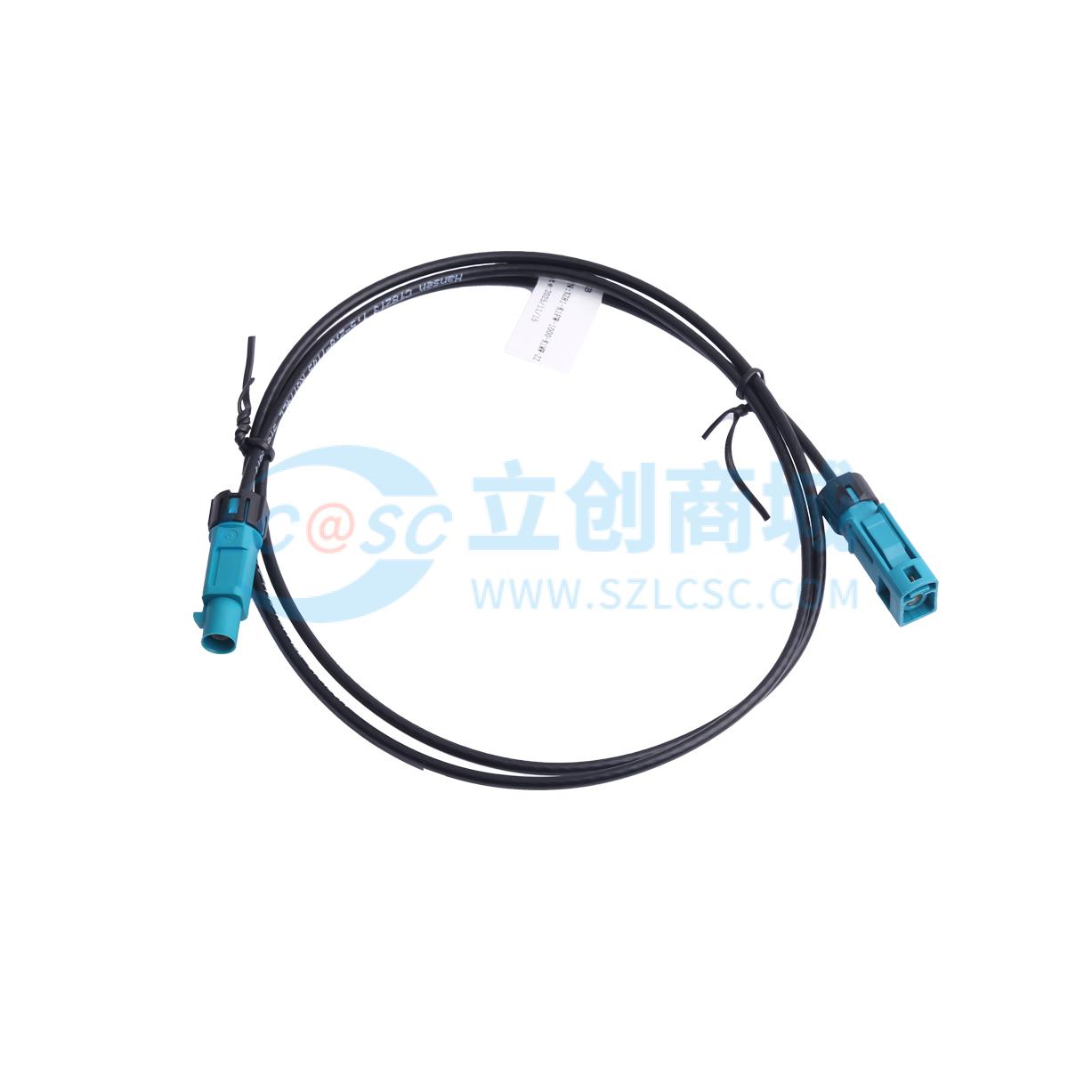 - 防水FAKRA母头 Z扣/水蓝色转防水FAKRA公头 Z扣/水蓝色,RG174LL低损耗线,黑色OD2.80mm,长度1000mm,三代