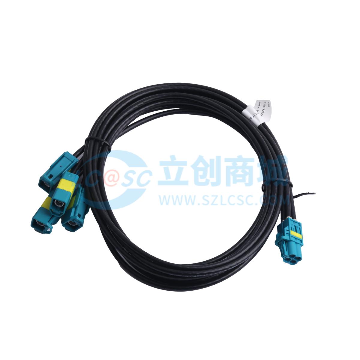 - 四腔MINI FAKRA 母头 Z扣/水蓝色转FAKRA 母头 Z扣/水蓝色x4,R版,RTK031/302线,黑色OD3.30mm,长度1000mm,三代