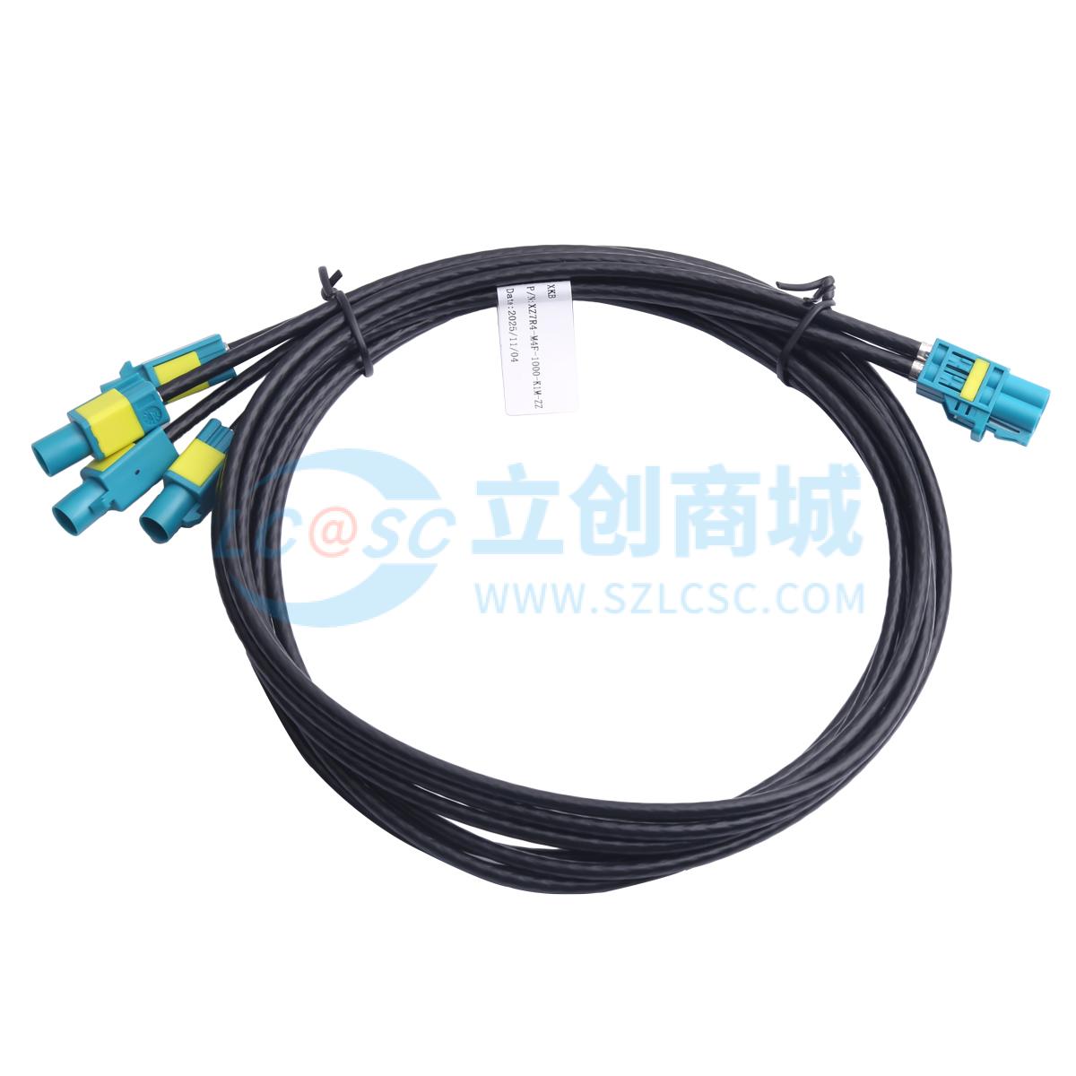 - 四腔MINI FAKRA 母头 Z扣/水蓝色转FAKRA 公头 Z扣/水蓝色x4,R版,RTK031/302线,黑色OD3.30mm,长度1000mm,三代