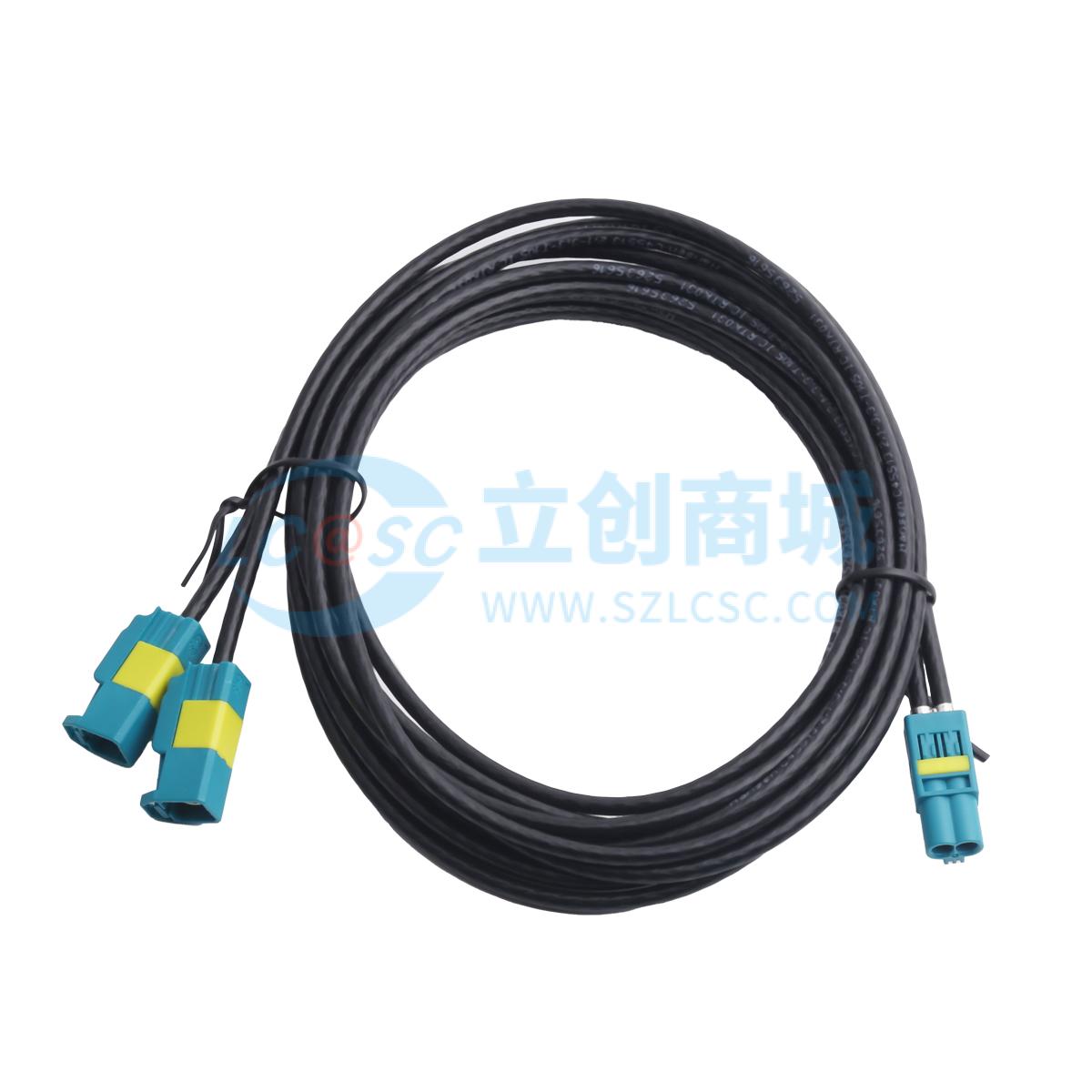 - 双腔MINI FAKRA 母头 Z扣/水蓝色转 FAKRA 母头 Z扣/水蓝色x2,R版,横排方向,RTK031/302线,黑色OD3.30mm,长度2000mm,三代