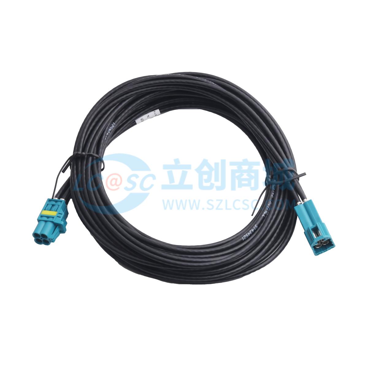 - 四腔MINI FAKRA 母头 Z扣/水蓝色转四腔MINI FAKRA 公头 Z扣/水蓝色,R版,RG174LL低损耗线,黑色OD2.80mm,长度2000mm,三代