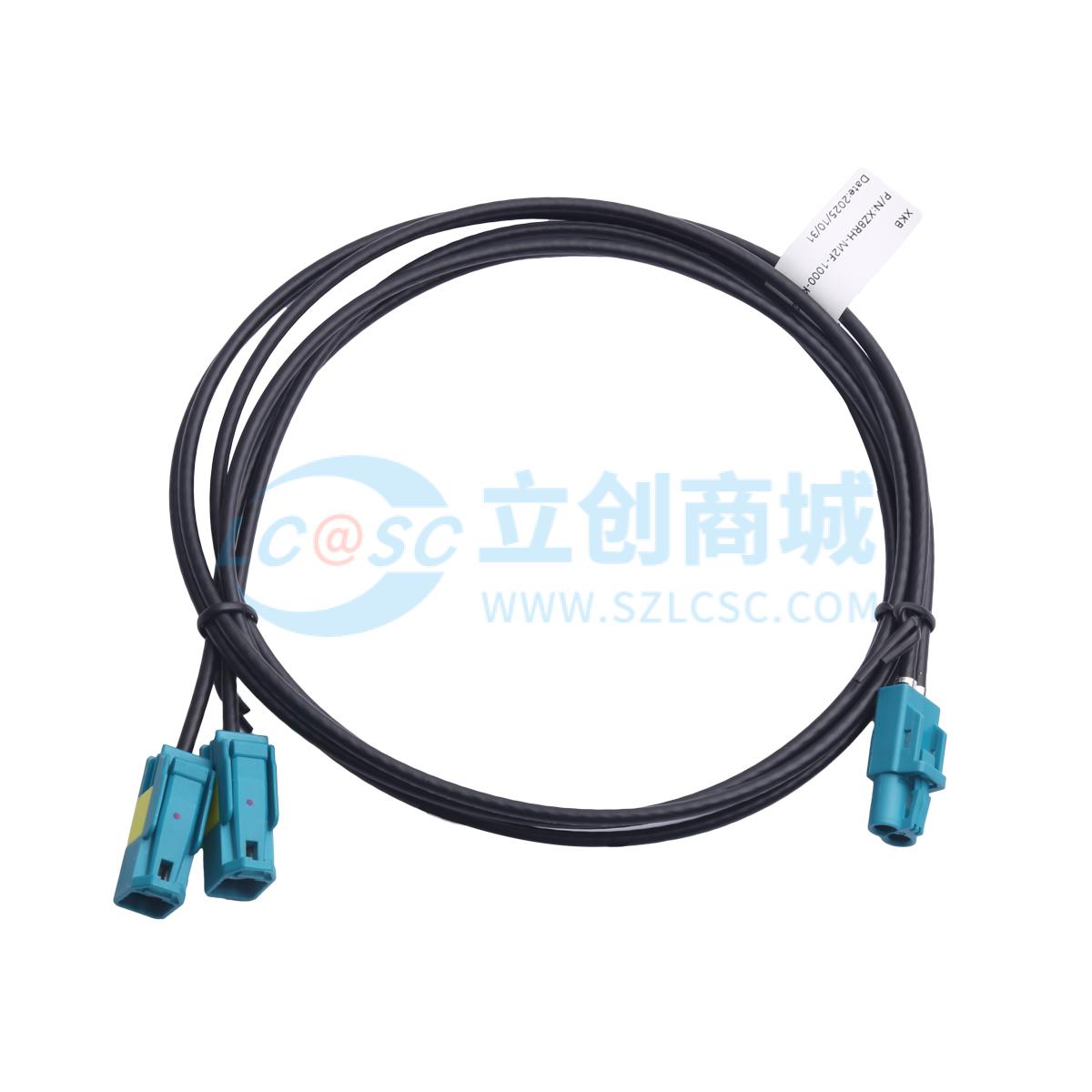 - 双腔MINI FAKRA 母头 Z扣/水蓝色转 FAKRA 母头 Z扣/水蓝色x2,R版,横排方向,RG174LL低损耗线,黑色OD2.80mm,长度1000mm,三代