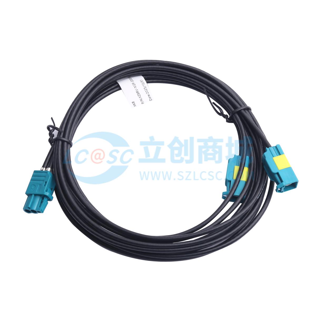 - 双腔MINI FAKRA 母头 Z扣/水蓝色转 FAKRA 母头 Z扣/水蓝色x2,R版,竖排方向,RG174LL低损耗线,黑色OD2.80mm,长度2000mm,三代