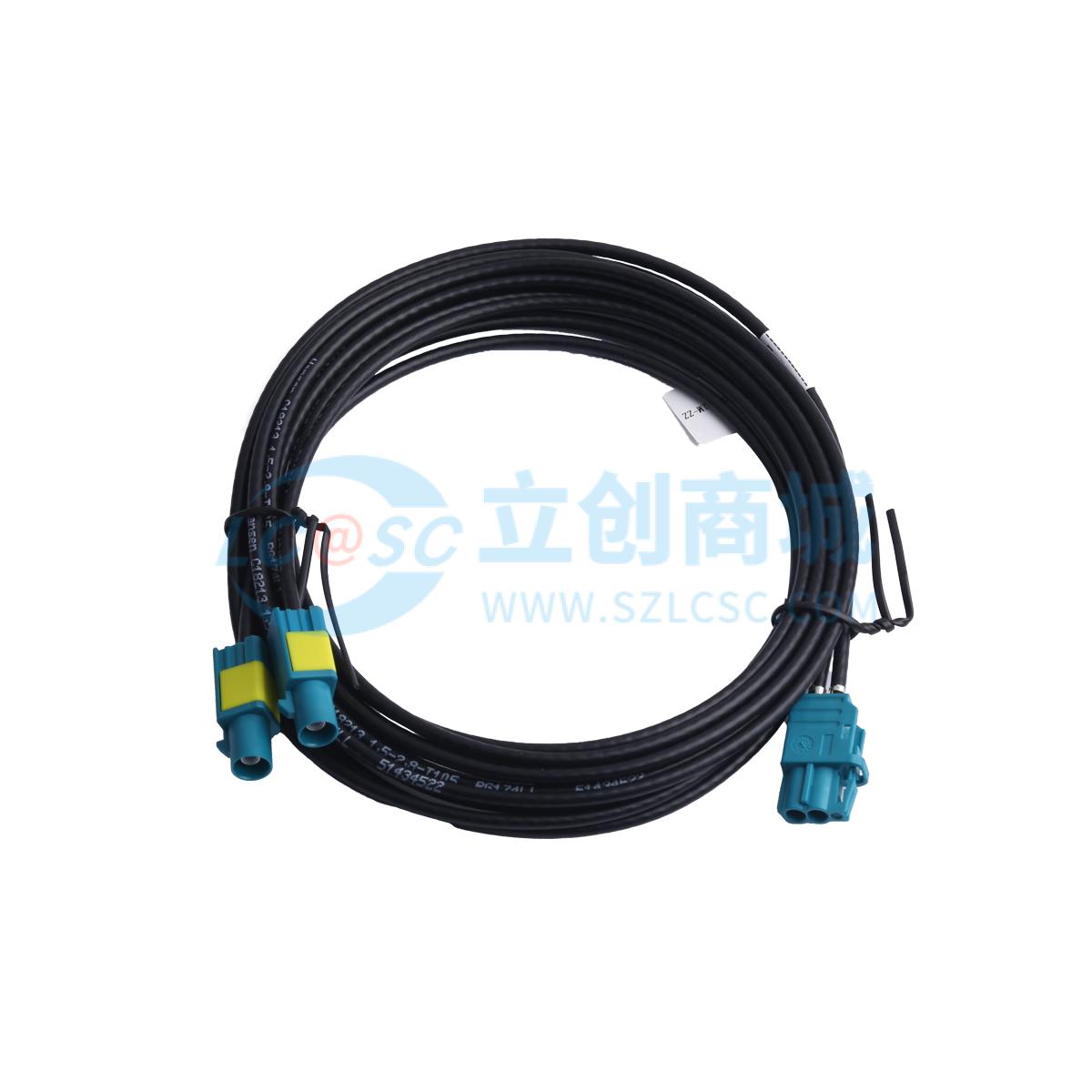 - 双腔MINI FAKRA 母头 Z扣/水蓝色转 FAKRA 公头 Z扣/水蓝色x2,R版,竖排方向,RG174LL低损耗线,黑色OD2.80mm,长度2000mm,三代
