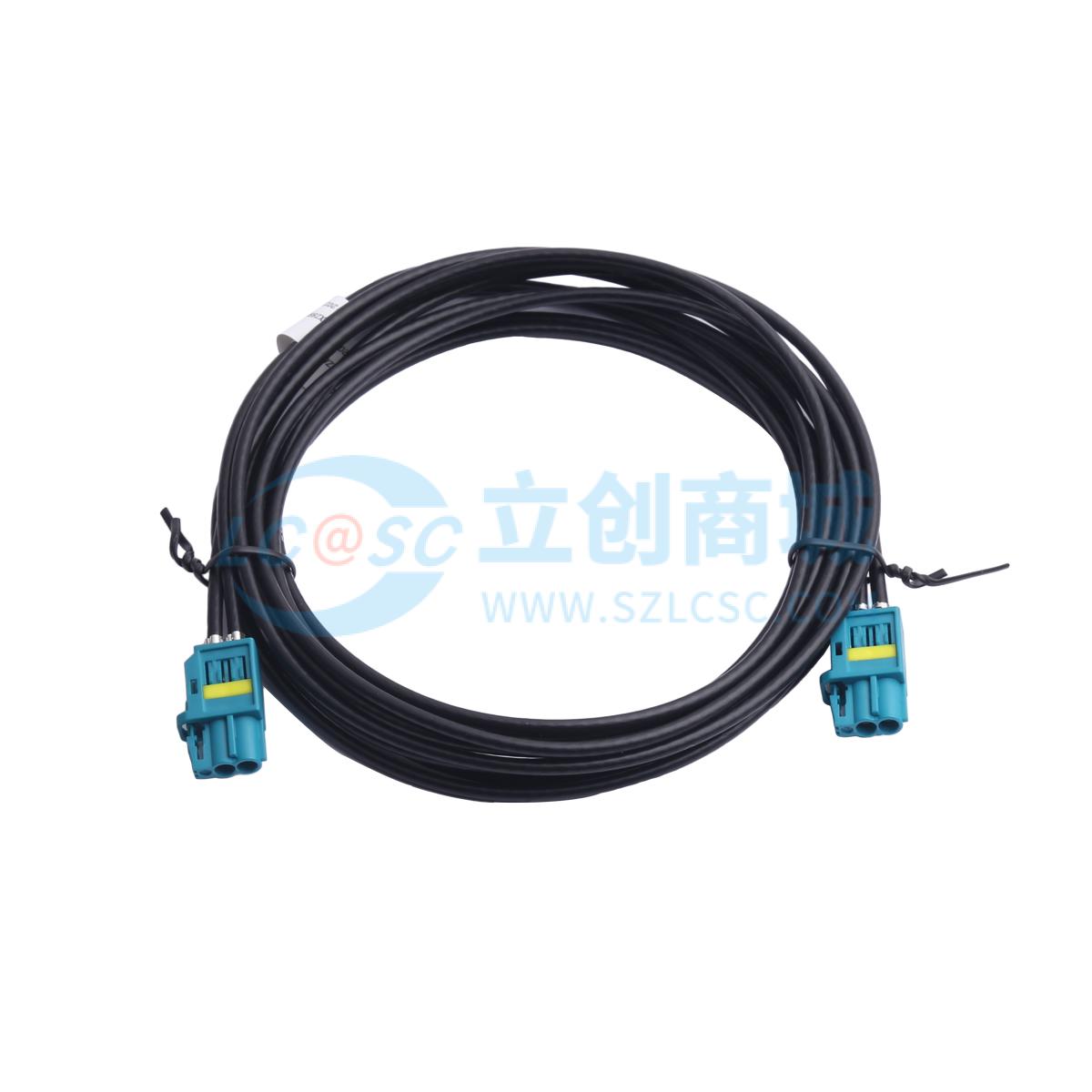 - 双腔MINI FAKRA 母头 Z扣/水蓝色转双腔MINI FAKRA 母头 Z扣/水蓝色,R版,竖排方向,RG174LL低损耗线,黑色OD2.80mm,长度2000mm,三代