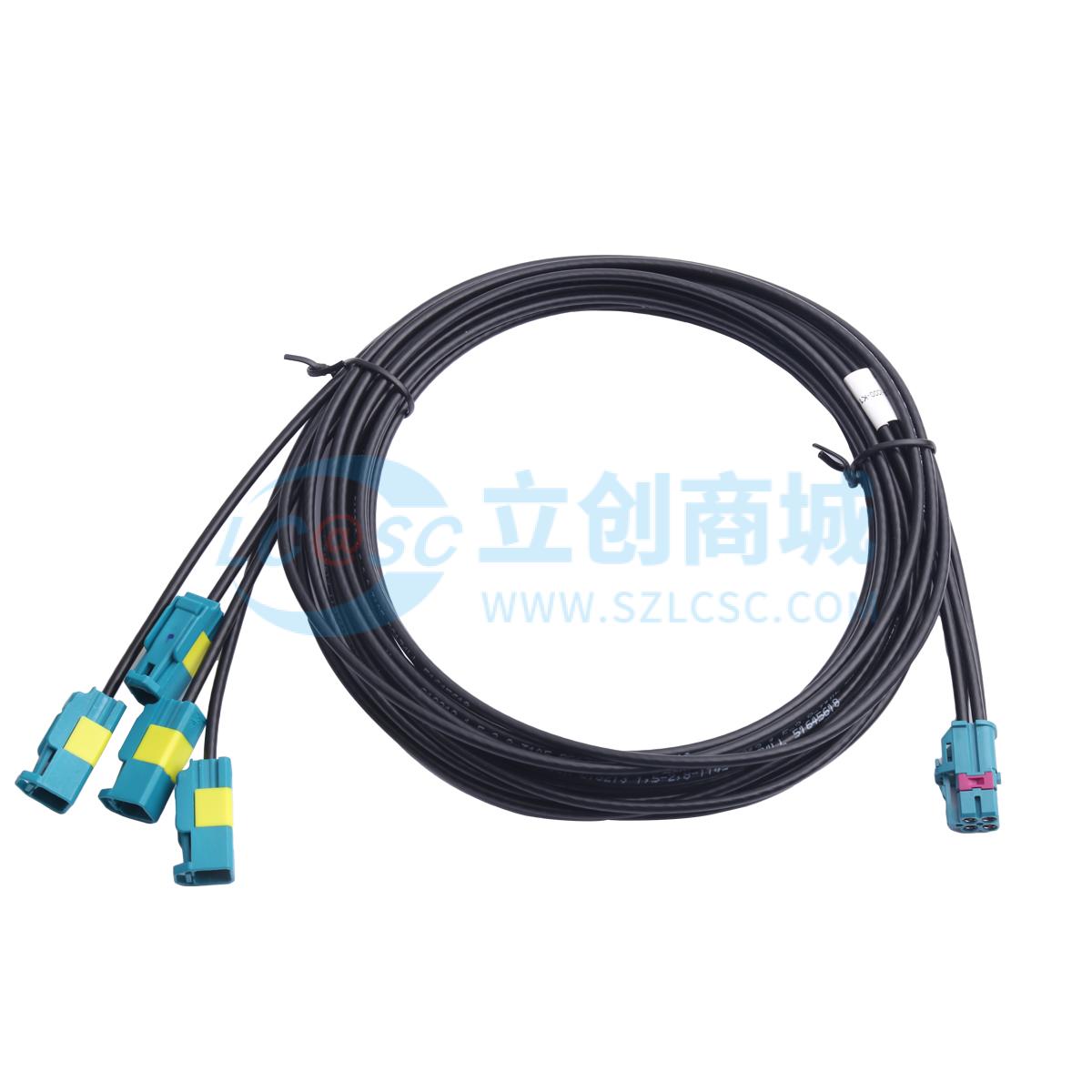 - 四腔MINI FAKRA 母头 Z扣/水蓝色转FAKRA 母头 Z扣/水蓝色x4,T版,RG174LL低损耗线,黑色OD2.80mm,长度2000mm,三代