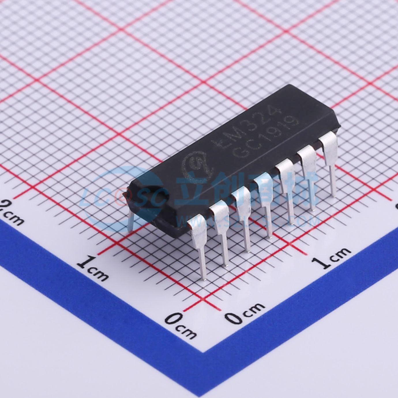 此图展示了型号为 LM324 的引脚布局