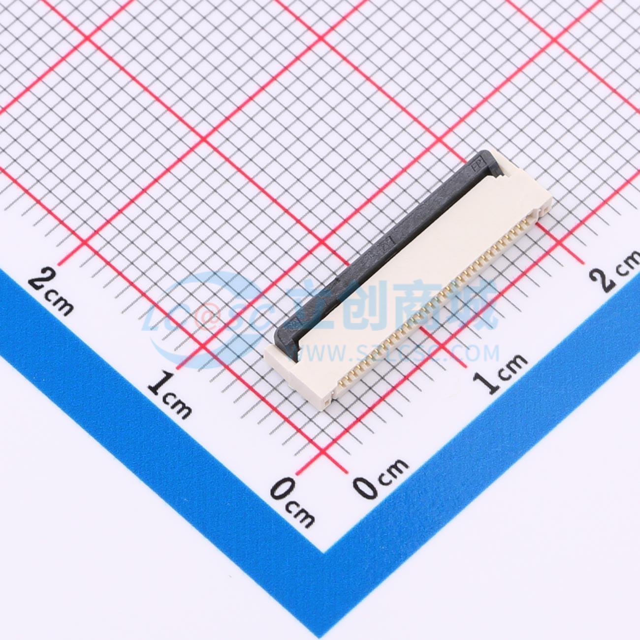 - 前插后翻镀金,翻盖式双侧接触点上下接,32P,0.5MM,H2.0