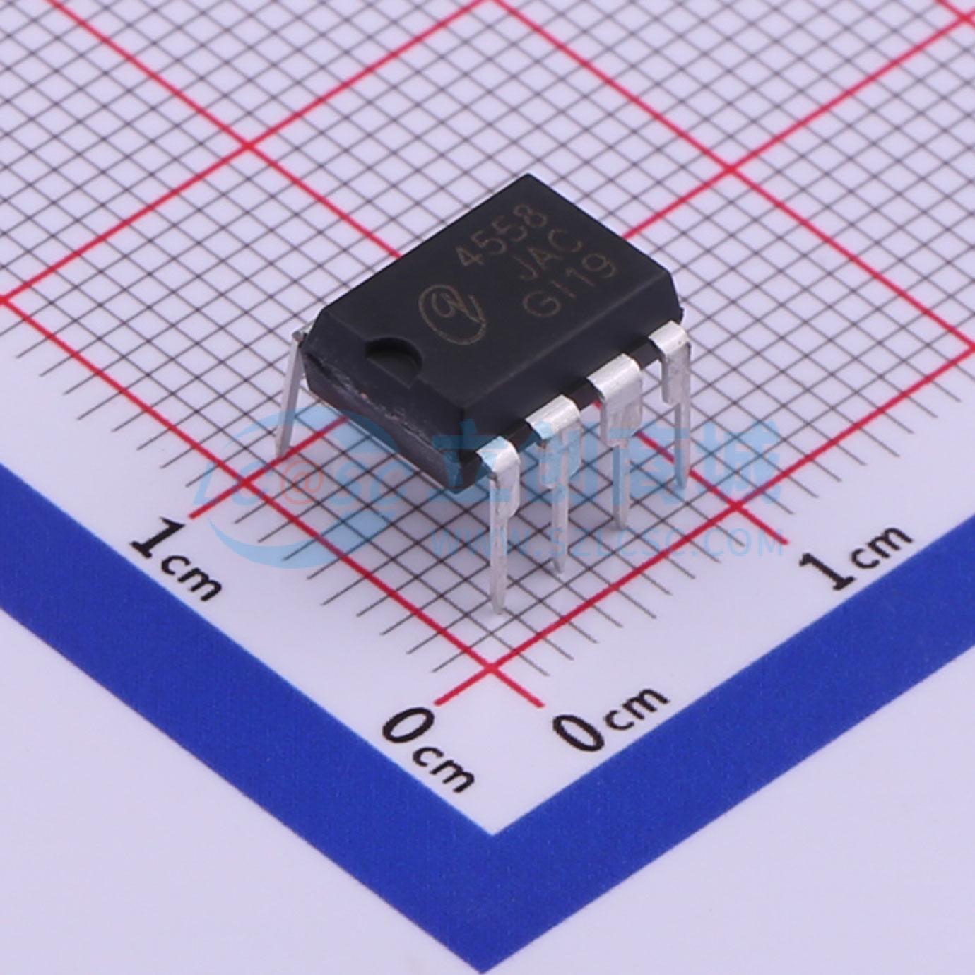 JR4558集成电路是一款低噪声双通道高增益运算放大器,采用先进的外延工艺,在单个硅芯片上进行内部补偿和构建。 它适合于电源电压范围很宽的单电源使用,也适用于双电源工作模式,在推荐的工作条件下,电源电流与电源电压无关。它的使用范围包括有源滤波器、补偿放大器、音频前置放大器、均衡放大器、以及在电子仪器仪表中用作各种线性放大。 JR4558采用SOP - 8和DIP - 8封装。