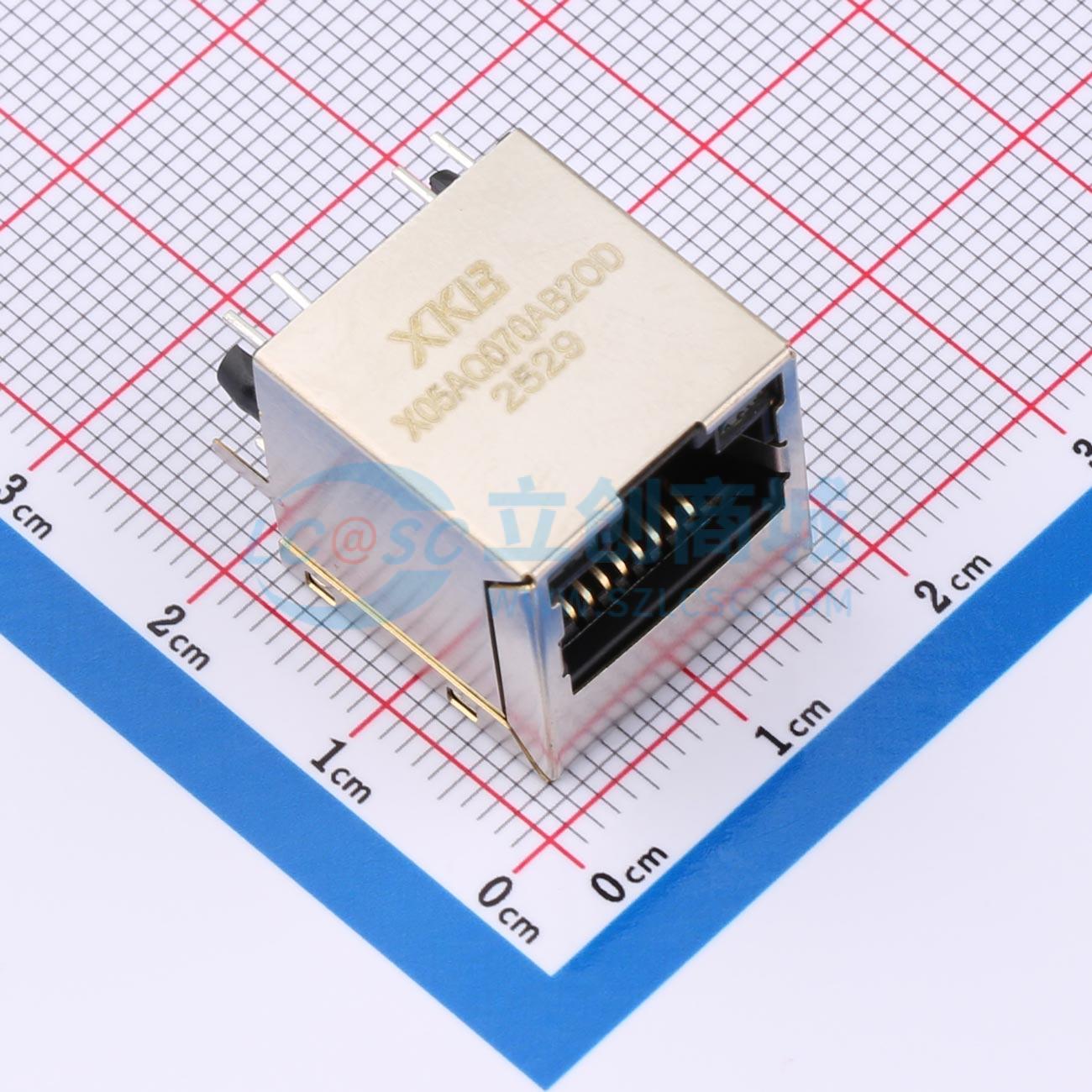 - RJ45 1x1,180°直插,Q070电路,带灯无翅平齐脚(所有机构/1类4.06mm),左绿右黄,半边脚PBT,插脚型,镀金6U"